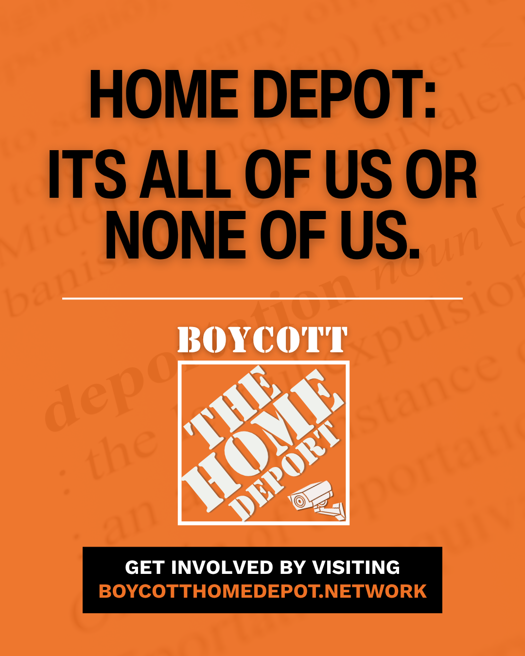 That silence speaks volumes. Home Depot cannot claim to serve our communities while allowing federal agents to terrorize people on their property. It’s ALL OF US or NONE OF US Since the company has refused to act, it’s time for us to use our power as consumers.